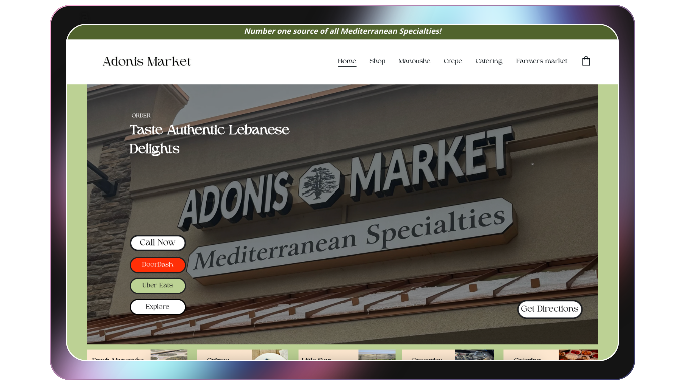 A digital storefront for an authentic Mediterranean market with online ordering, catering requests, and a warm brand experience.