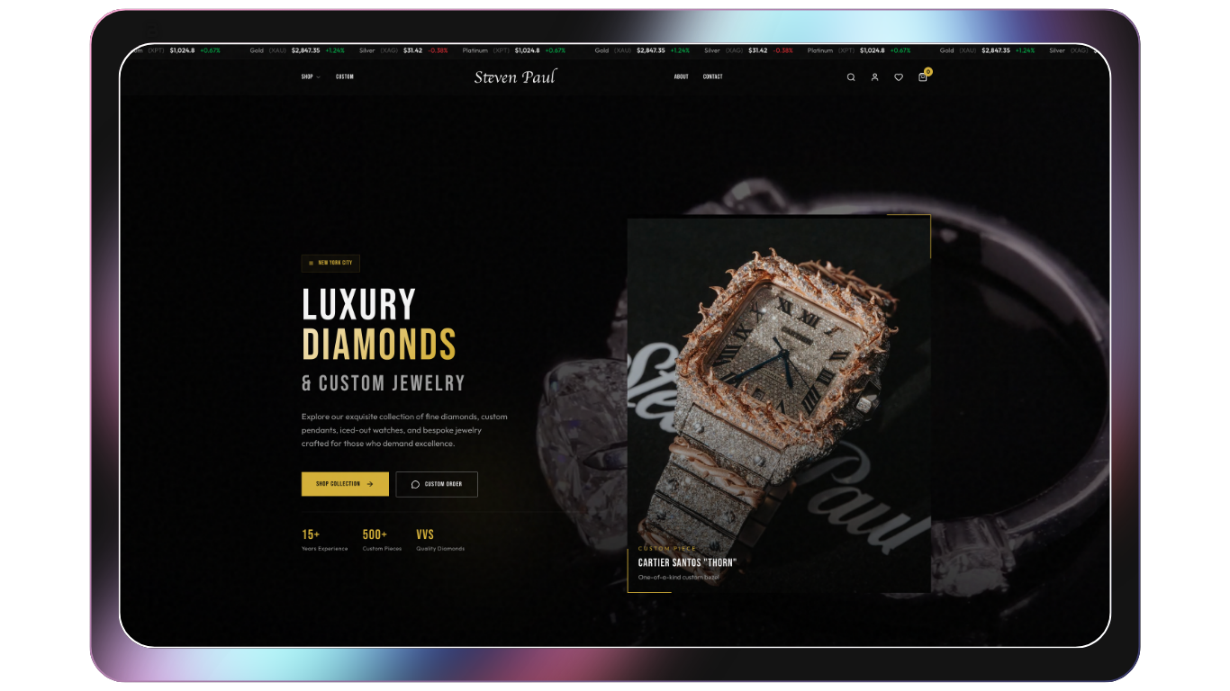 A premium e-commerce redesign for a custom jewelry house, featuring immersive product galleries, appointment scheduling, and a refined checkout experience.